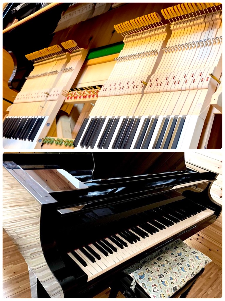 その当時に製造されたこのシリーズのピアノは、その時使われていた接着剤が原因でこの様な症状が出てるらしいとのこと。