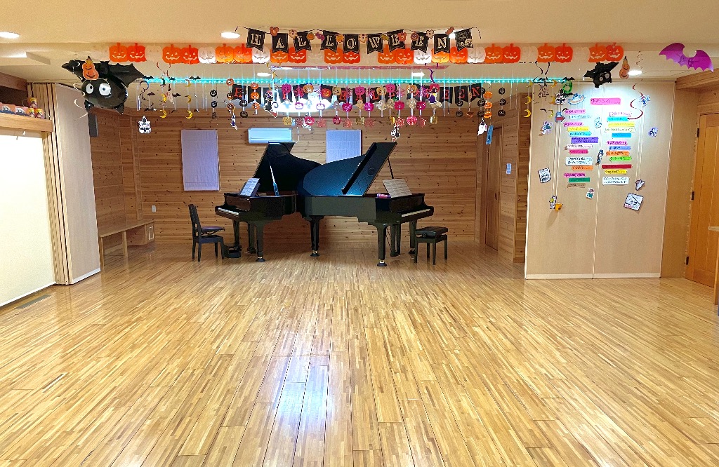 教室の空間もカラーのライトを演出として取り入れてみました。